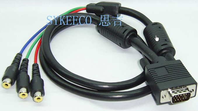 产品功能:此电缆广泛应用于VGA(视频图形阵列)与色差分量信号的转换传输,适应于各种电器设备的D-SUB 15PIM/RCA接口,如电脑、高清DVD与投影仪、高清数字电视,背投、等离子电视等家电设备的连接线。