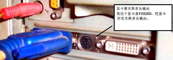 如果你的ATI Radeon显卡带有DVI端子,那么你除了需要一根VGA转3RCA的线之外,还需要一个DVI-I转VGA的转接头。因为此类显卡的YPbPr信号会从DVI-I端子输出,所以你需要通过DVI-I转VGA的转接头来连接VGA转3RCA线。