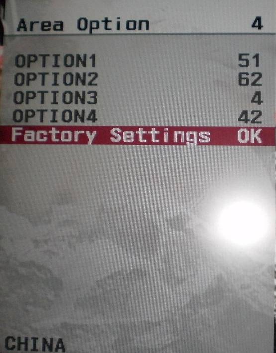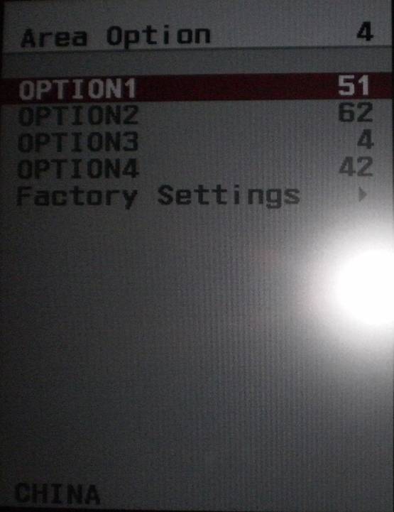 按遥控器上的“向下键”,调到“Area Option 4”。如下图所示。