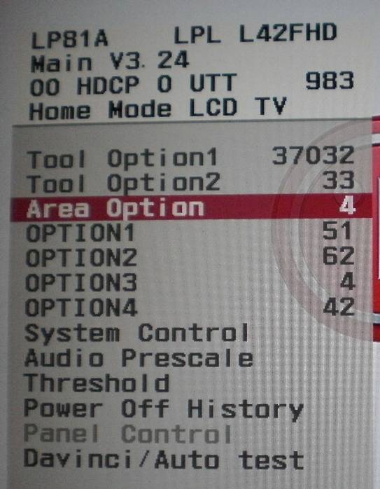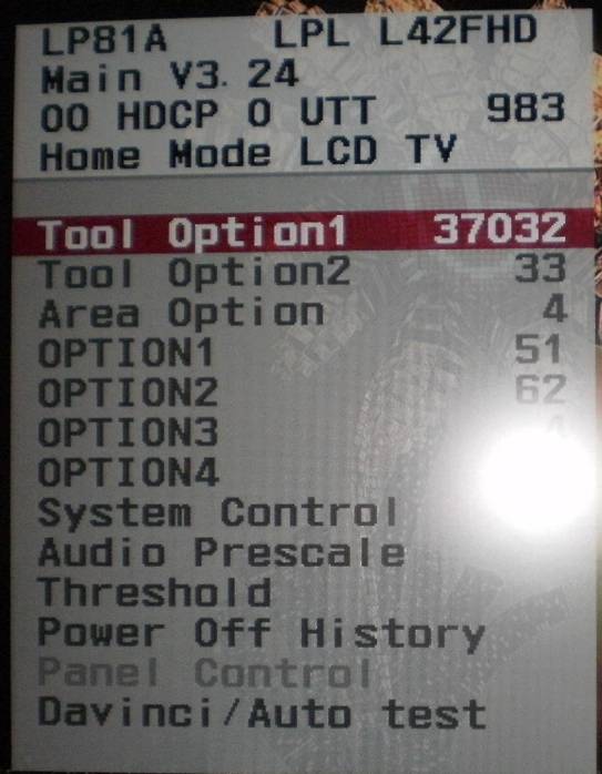 从上往下看,第三行“OO HDCP O UTT 983”,表示此机器使用时间为983小时(LG液晶的计时单位为:小时)。