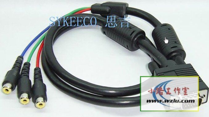 有这三条线,就能支持VGA,S端子,AV三种规格,想必基本上各种电视都不怕了。再加一条音频线,声音就支持完备了。