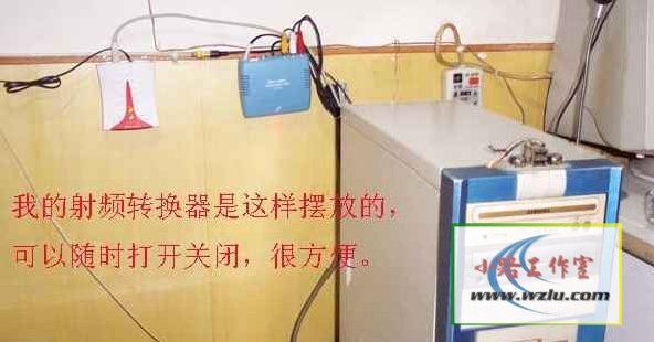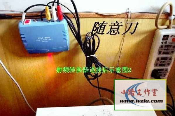 这是我的射频转换器连线好后的全图,这里因为我自己的书房当初装修的时候没有布闭路,所以我是用一根9米长的射频线(同轴电缆)线从客厅拉过来的,射频转换器的输出端和它相联。