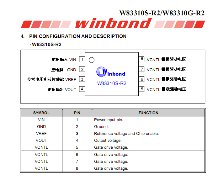 电源模块W83310G-R2引脚功能及应用电路介绍