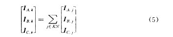 (5)由末端负荷支路按“支路计算序列”向电源点,计算各支路的三相电流。如支路k的电流为
