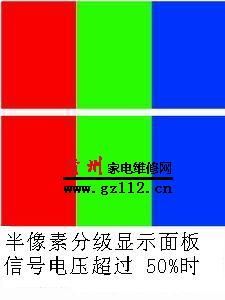 随着三星、索尼、夏普半像素技术的出现,从此也就解决了液晶电视的对比度、灰阶的表现能力;也许大家对半像素的概念还不太了解,首先,我们先大概了解一下,什么叫半像素?怎么区别半像素?仔细观察,我们不难发现,半像素的外形呈鱼鳞状,当控制面板显示图象的信号电压超过50%时,整个像素发光,当低于50%时,可以控制每个"半像素"发光。借此设计显著增大了整块液晶面板的细节表现力,对比度、灰阶还原更加真实自然。