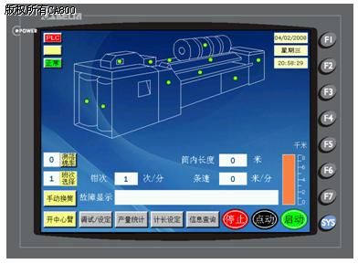 子界面括参数设定、产量统计、故障查询、语言转换等十几个画面,内容丰富、践作直观,可使践作人员在极短的时间内按屏幕提示就可熟悉设备的践作。