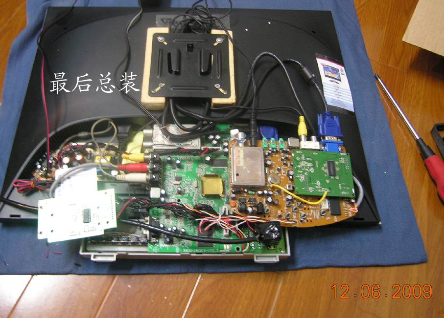 后进行总装并固定所有电路板,检查有没有碰擦短路等不良现象,在网上购了一个安装在墙上之液晶电视专用金属支架,这样应该差不多了。见图6