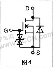 MOS管内部的保护环节有多种类型,这就决定了测量过程存在着多样性,常见的NMOS管内部结构如图3、图4所示。