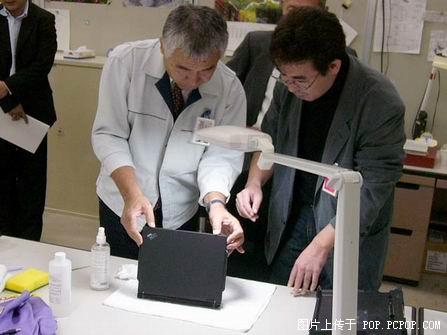 顺便说一下,液晶屏幕被弄脏似乎确实是商品价值下降的一大原因。在工厂里面有专门确认液晶显示屏是否清理干净的监督,他们严格的检测清洁工作。笔者原以为自己的那台机器一定没有问题,但没想到很可惜还是让监督打上了不合格的印记。清洁的时候因为没有注意,还留有有一处斜着光线照才看到的污渍没有弄干净。