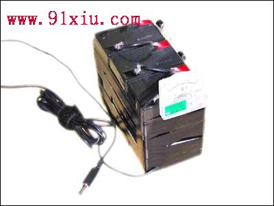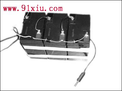 步骤一:把三块单个的蓄电池(图2)用绝缘胶布捆绑;然后可用线径较粗的电线把三块电池串联起来),构成一个18V、4Ah的电池组。