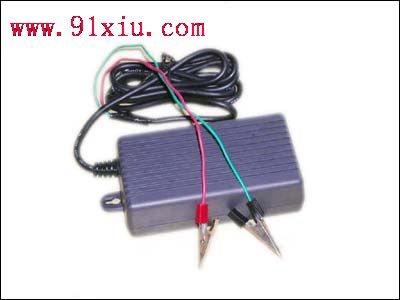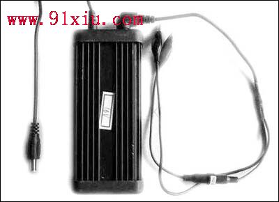 步骤一:改制充电器。为了简化制作过程和更方便于携带,笔者是利用现成的二手笔记本电脑电源适配器来改制成充电器的。找到的电源适配器的参数为:直流输出24V、1.8A(也可以用市售的小型开关电源代替,电流值 好能大一些)。把该电源适配器的输出插头剪除,在输出电压的正极焊上一只红色鳄鱼夹,在另一端焊上黑色的鳄鱼夹(图6)。