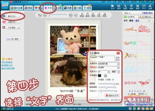 4.选择“文字”界面下的“静态文字”功能,在编辑框内输入需要的文字,并对文字的字体、大小、位置等进行调节即可。