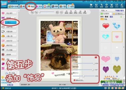 5.选择“饰品”界面,挑选喜欢的饰品添加并调节饰品的透明度、位置、大小等即可。