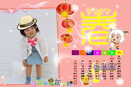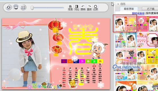 处理方法二:其实在完成第四步的践作后,我们还有一种更简单的方法来制作新年宝宝壁纸。如图10所示,我们可以选择“场景”中的“日历”,为宝宝的照片应用一个可爱的《喜羊羊与灰太狼》日历场景。