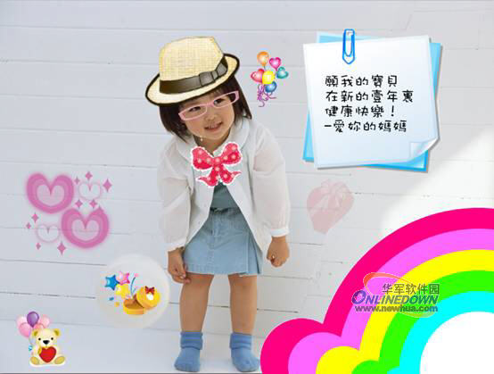 俗话说“儿是娘身上掉下的肉”,父母对子女之爱可说是 无私 伟大的。如今很多白领都拥有了自己的小宝宝,可是由于工作太过繁忙,并不能总是与宝宝在一起。所以年轻的父母们就会想办法补偿一下,而将自己宝宝的照片制作成壁纸放到桌面上就是一个不错的选择。今天笔者就教大家制作一张超可爱的新年宝宝壁纸。先看一下效果图: