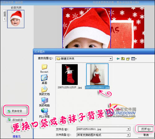 第三步:抠好图后,接着是“狸猫换太子”的重要一步,利用“更换背景”,从电脑中打开那个口袋的****。如图5所示。