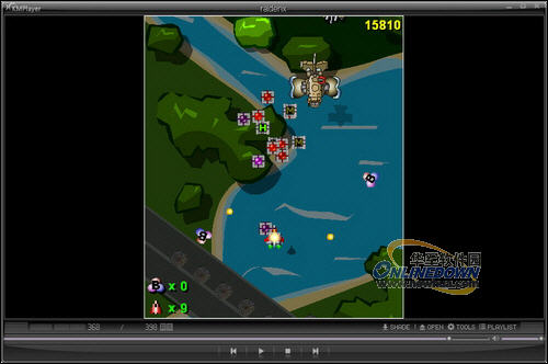 挖蛋方法:打开KMPlayer后右键点击播放窗口,选择“选项-关于”命令进入,在弹出的软件信息窗口的“命令行开关”标签项下,连续单击左上角黑色窗口5到6次(如图10所示);经过短暂的游戏缓冲后,即可开始玩经典的“雷电”游戏了,如图11所示。