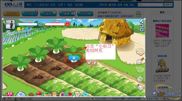 (图1-1:点击“小剪刀”剪切开心农场的页面)