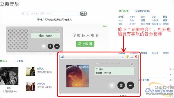 (图2:使用火狐中国版2010“剪”下豆瓣电台,听歌更方便)