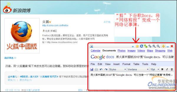 (图3:使用火狐中国版2010“剪”下谷歌Docs,可以当做一个网络记事簿来用哦)