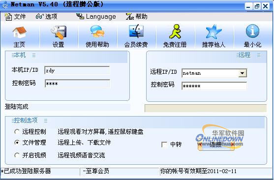 下载网络人(Netman),即个人版,解压后会发现,里面有两个软件,一个“远程办公版”,一个“远程监控版”。两者区别在于:远程办公版界面为蓝色,主要用于办公,可以注册免费会员进行使用,不花一分钱,实现轻松远程办公;远程监控版为金黄色( 新版为灰色),因为主要用于远程监控,监控对方时不让对方发现,用于监管孩童电脑等。监控版安装后不创建桌面快捷方式,需要自己到安装文件夹中(默认安装路径为:C:\Program Files\Netman,如未修改,到此处践作),启动软件,然后热键Ctrl+Y呼出软件,进行践作。