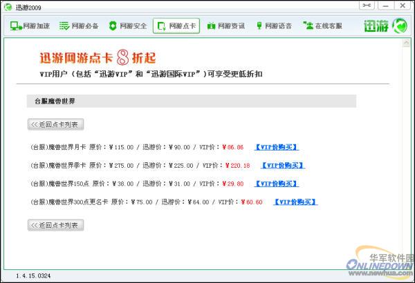 还有一点提示,在迅游的"网游点卡"中可以安全的购买到各种网游充值卡,VIP用户还有优惠的折扣价购买权利,所以还是比较划算的。