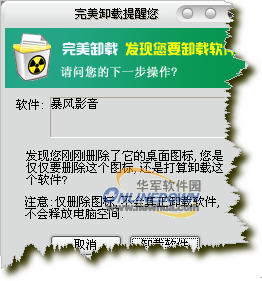 现在装了完美卸载,在删除桌面图标后,会出现卸载软件的提示: