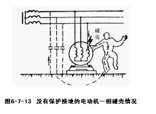 图6-7-13 没有保护接地的电动机一相碰壳情况