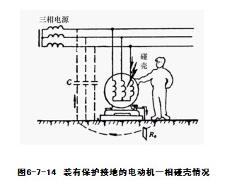 图6-7-14 装有保护接地的电动机一相碰壳情况