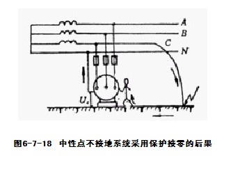 图6-7-18 中性点不接地系统采用保护接零的后果