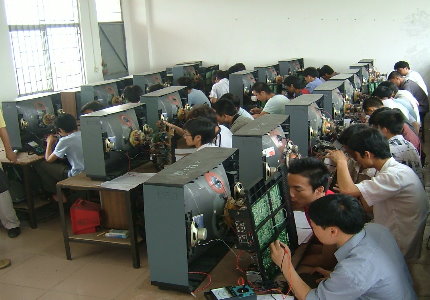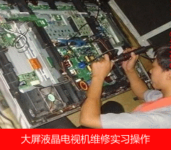 ⑧实习维修液晶彩电。 ◆ 主修:A/D驱动板维修、高清数字板维修、多灯高压板维修,液晶显示器A/D驱动板电路结构框图、启动控制流程、详细电路分析、故障分析、检修技巧、液晶电视机高清数字主板电路结构框图、启动控制流程、详细电路分析、故障分析、检修技巧、液晶电视A/D主板的复位电路、供电电路、输入接口电路、控制电路、DC-DC电路原理分析、多灯高压板原理、结构框图、保护电路、PWM电路分析、检修技巧、液晶屏板(逻辑板)原理、液晶屏显示原理、电路结构、DC-DC升压电路、故障分析、检修技巧、液晶驱动板、高清液晶电视板、液晶屏板(逻辑板)、多灯高压板、芯片级维修、综合实践。